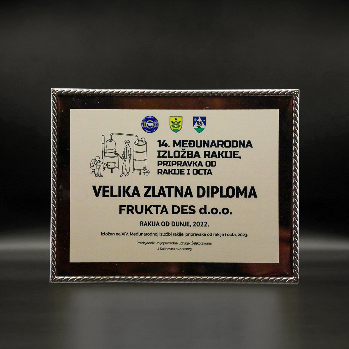 Frukta Des je obiteljska destilerija s dugogodišnjom tradicijom u proizvodnji najfinijih rakija, gin-ova i likera. Naša priča počinje davnih dana kada su naši preci prvi put počeli destilirati plodove prirode u srcu Bilogore. Kroz generacije, prenosi se ljubav prema zanatu, kao i posvećenost najvišim standardima kvalitete. Svaka kap naših proizvoda nosi u sebi dio te bogate tradicije i nasljeđa.